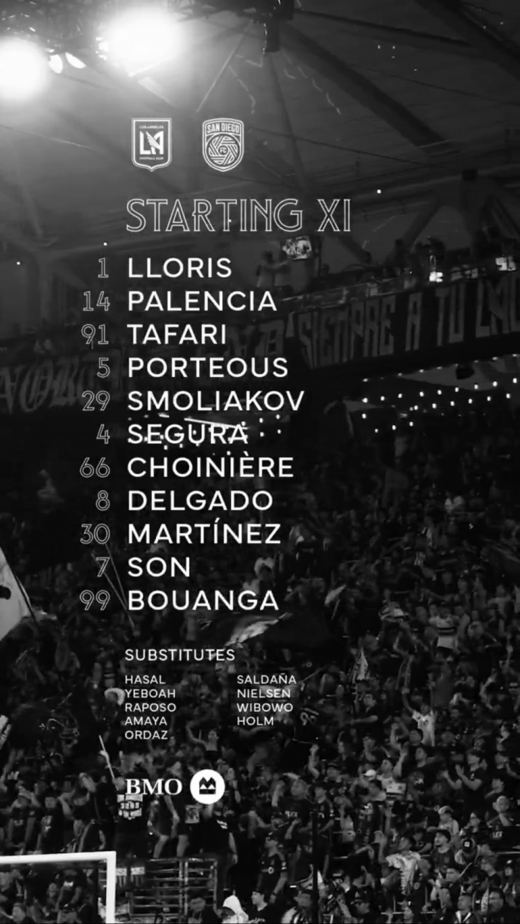 洛杉矶FC首发如下: